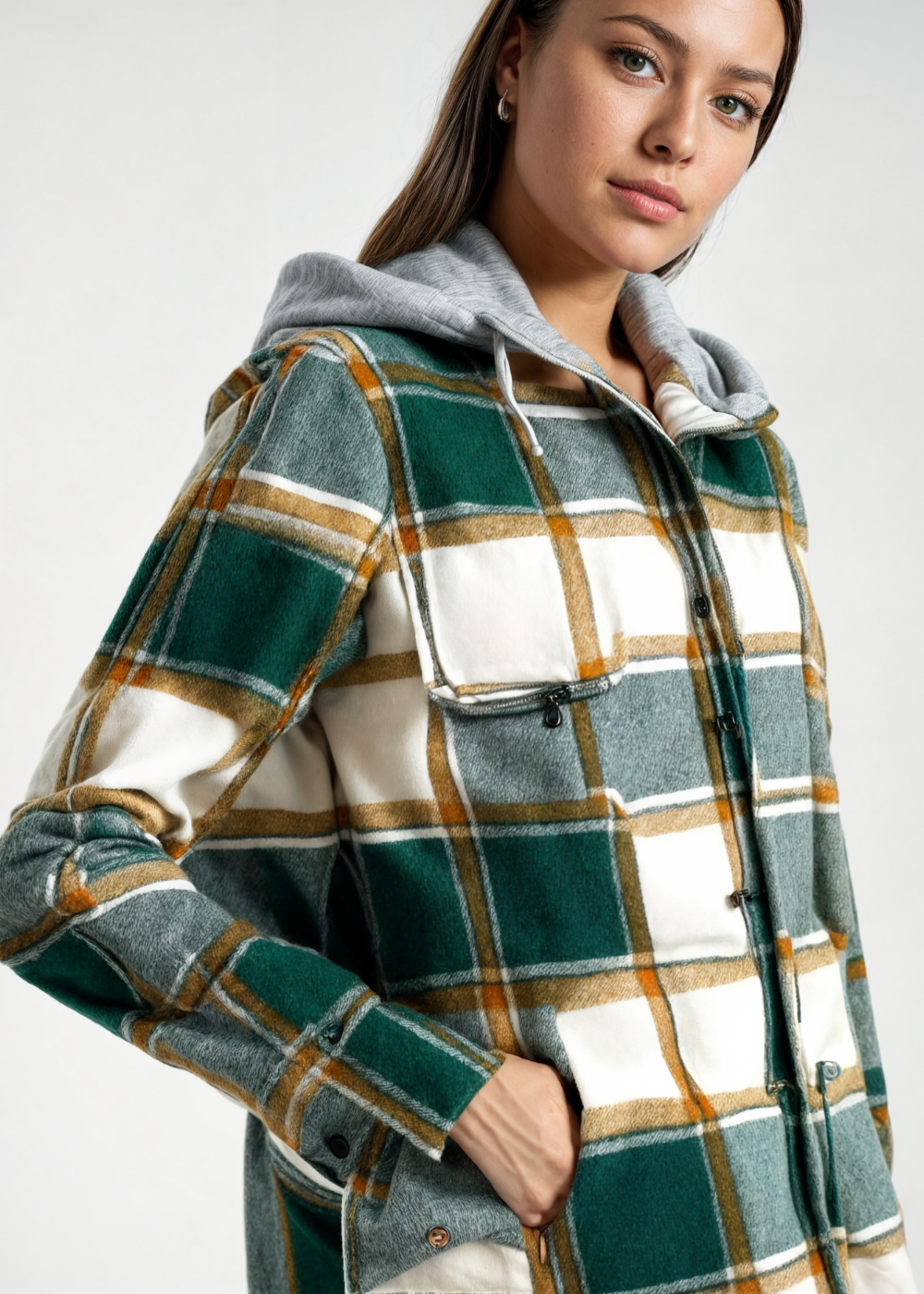 Var stilfullt chic med Evelyn Kapuschong, designad av ett mjukt men hållbart tyg som perfekt balanserar komfort och modern stil. Detta mångsidiga plagg är idealiskt för dagligt bruk, och kombinerar sömlöst praktisk användning med en elegant, samtida estetik.